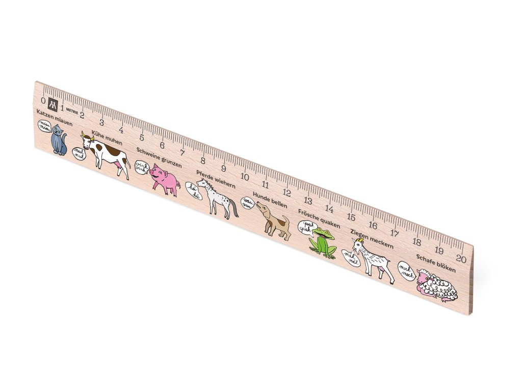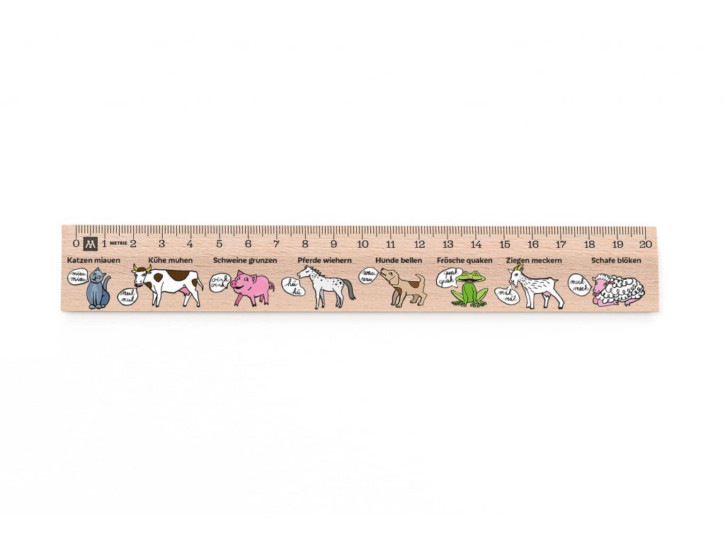 Metrie, Didakt-M02 Holzlineal, bedrucktes Tiere sprechen, 20 cm