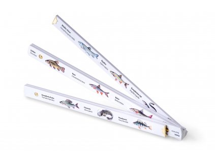 Jeder Angler braucht ihn: unser 2m Zollstock Block 52 für Angler mit 30 Fischarten und deren Namen in Deutsch-Latein Spaß und lehrreich zugleich!