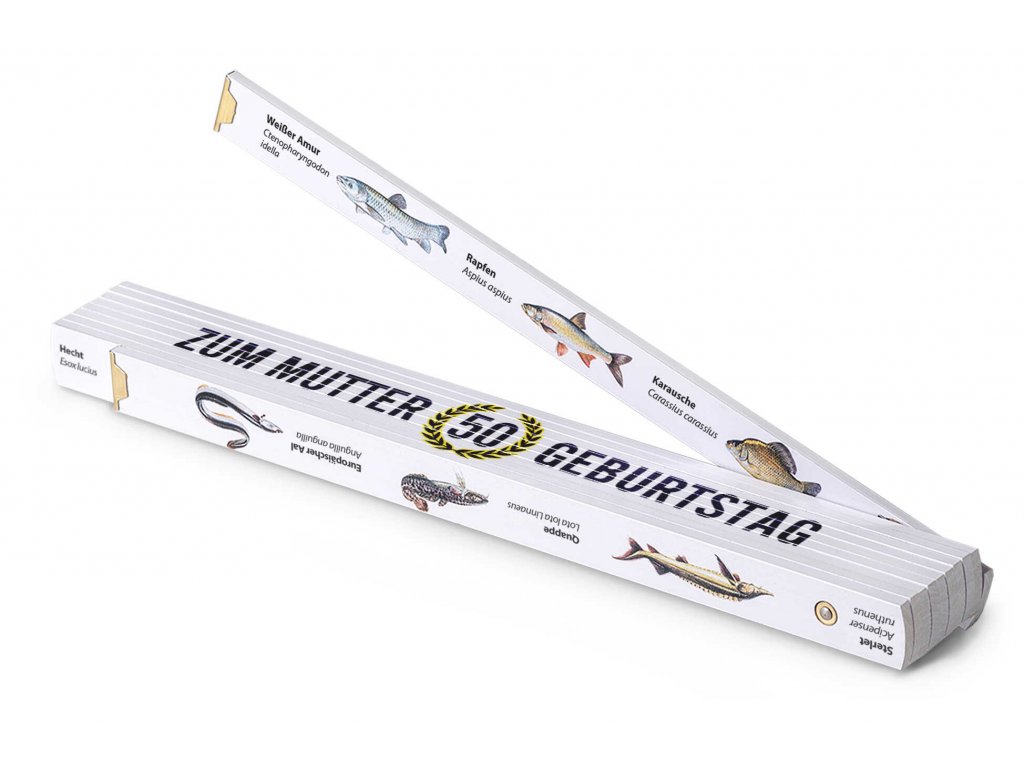 Ideales Anglergeschenk für Mütter: 2m Zollstock Petri Heil mit 30 Fischbildern