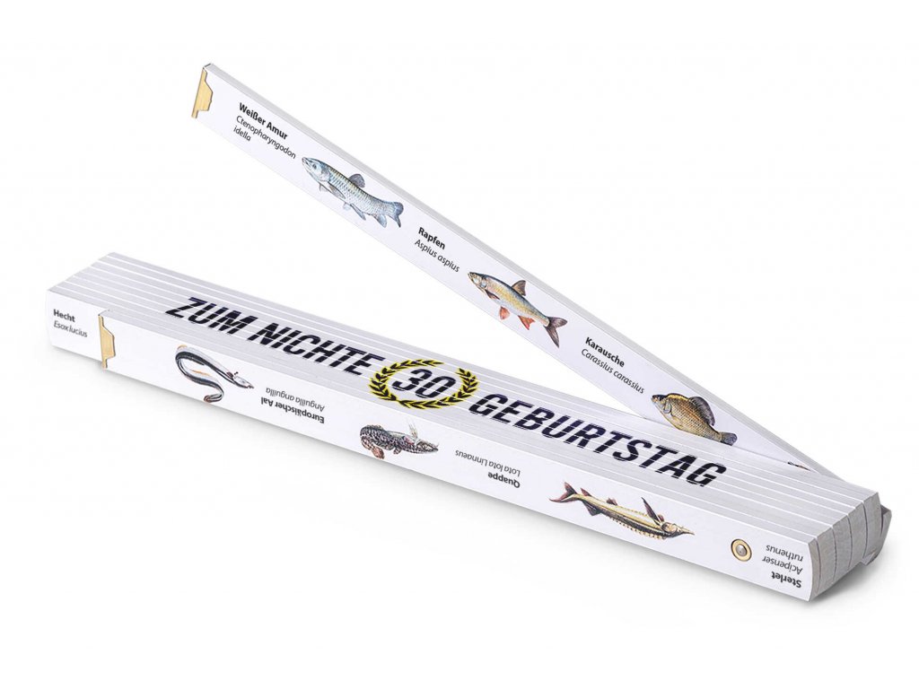 Ein Zollstock als Geburtstagsgeschenk, der jede ihrer Angeltouren zu etwas Besonderem macht.