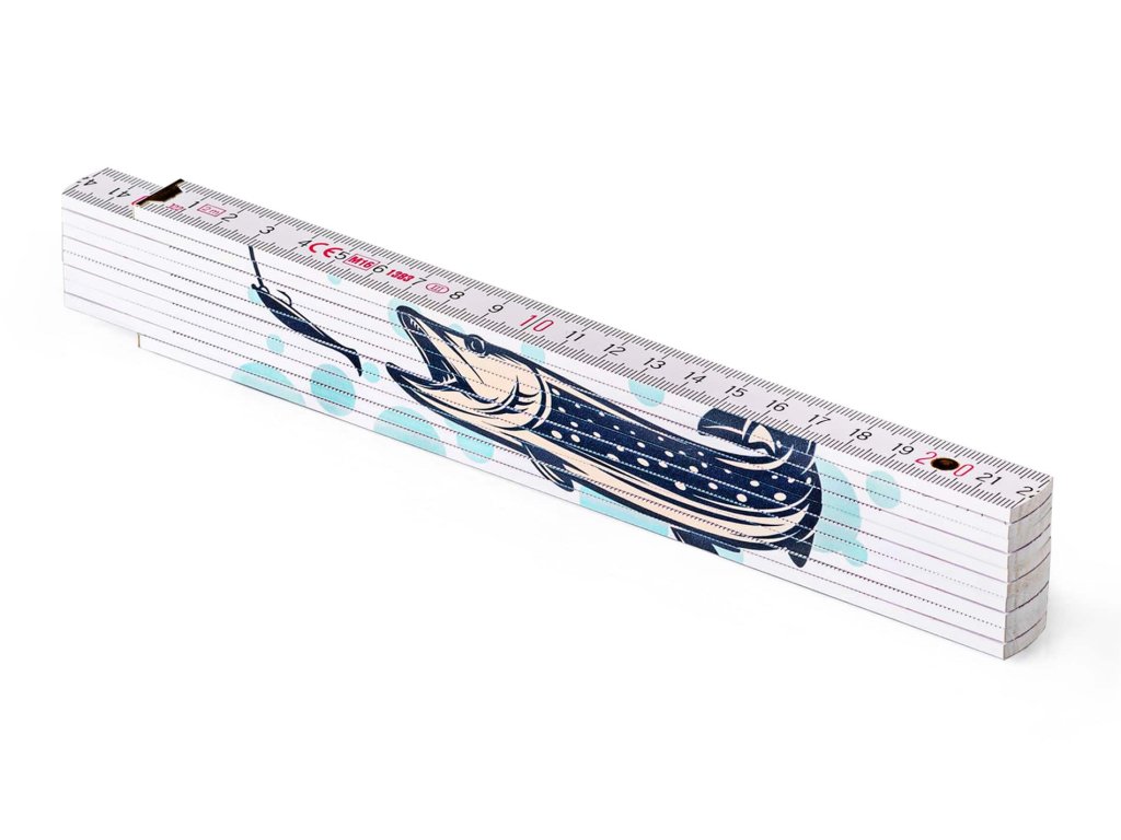 Entdecken Sie 30 Fischarten auf unserem Zollstock – eine unterhaltsame und bildende Ergänzung für jede Angeltour.