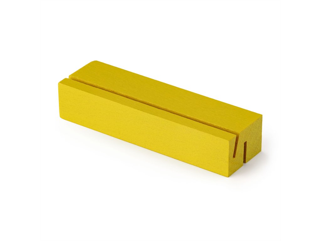 Der gelbe 10 × 2 × 3 cm Kartenhalter bietet dank zwei Nuten flexible Platzierung in Doppelreihe. Mit Gravur oder Farbdruck wird er zum klaren Träger Ihrer Botschaft. Bereits ab einem Stück individuell konfigurierbar und schnell einsatzbereit.
