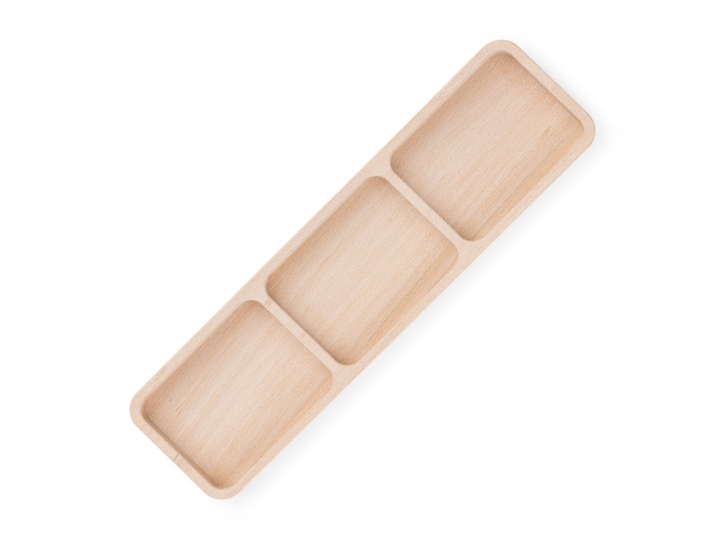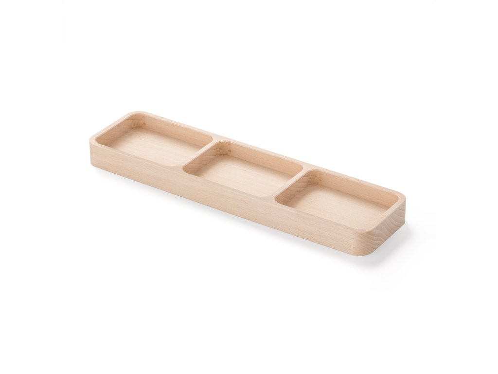 Durch die Aufteilung in drei Längsfächer lässt sich die Schale leicht für praktisches Sortieren nutzen. Der visuelle Rhythmus der Trennwände wirkt zugleich ruhig und harmonisch. Sie eignet sich sowohl für gastronomische als auch für organisatorische Zwecke, etwa für Kleinteile, Besteck oder Dekorationen.