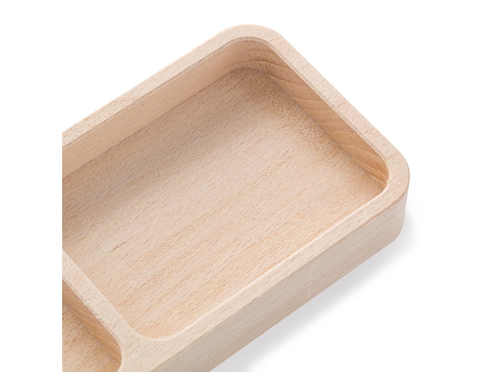 Gefertigt aus einem Stück massiven Buchenholzes mit einer Gesamtdicke von 20 mm. Alle Trennwände sind präzise und sauber eingefräst, ohne Materialverbindungen. Die Oberfläche ist glatt bearbeitet, die natürliche Maserung des Buchenholzes bleibt erhalten und sorgt für ein angenehmes haptisches Erlebnis.