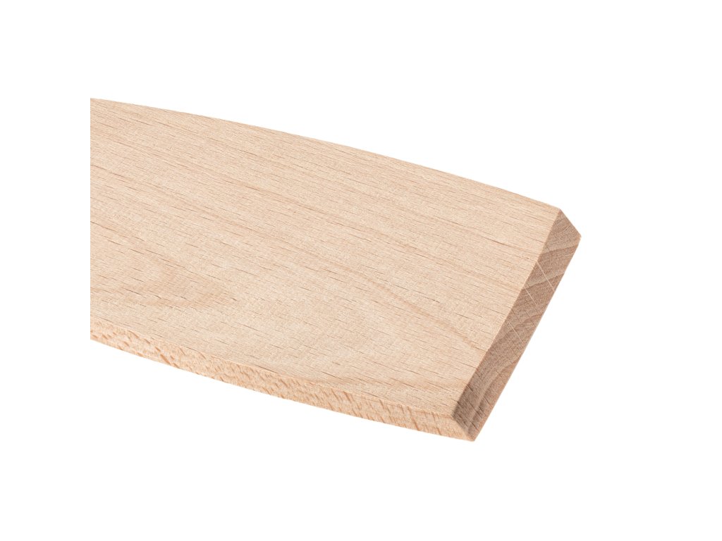 Aus einem Stück massivem Buchenholz ohne Oberflächenbehandlung gefertigt. Die Länge beträgt 28 cm, die Breite ca. 6 cm und die Stärke 3 mm. Die Kante ist leicht abgeschrägt und der Körper sanft geformt für eine angenehme Handhabung.