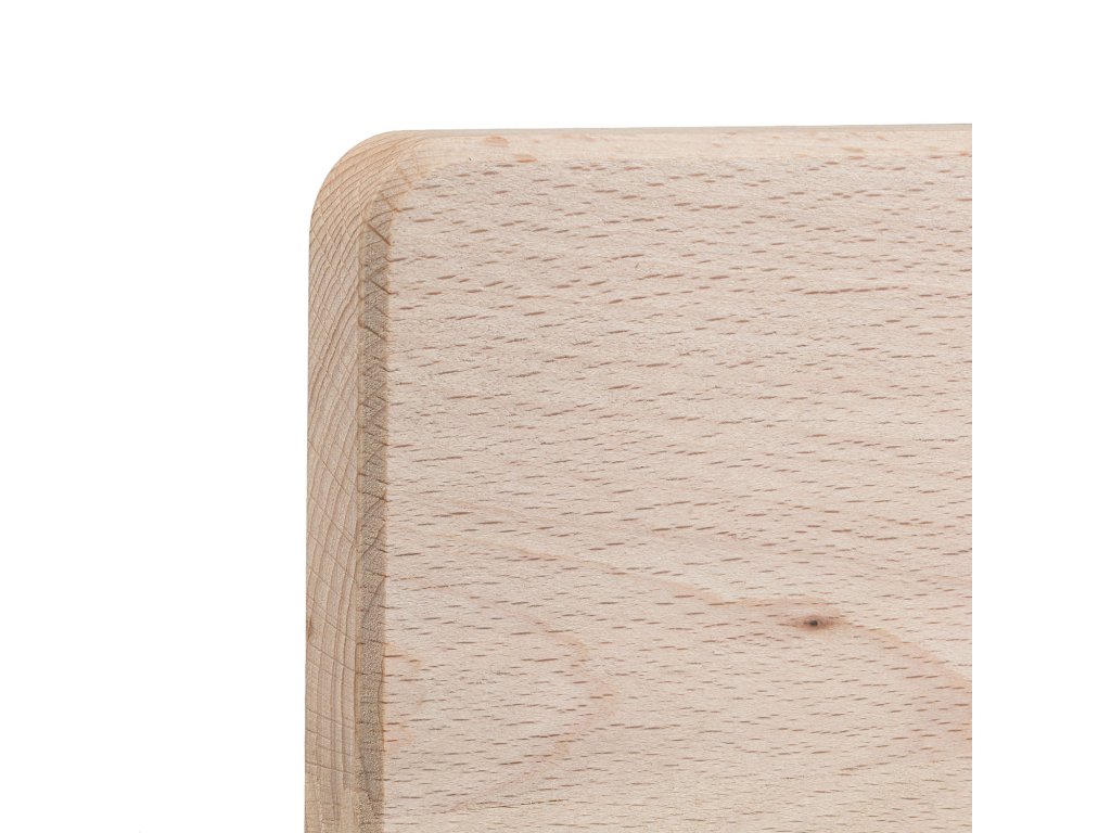 Das Brett besteht aus massivem Buchenholz ohne Oberflächenbehandlung. Jedes Stück trägt die natürliche Maserung des Materials.