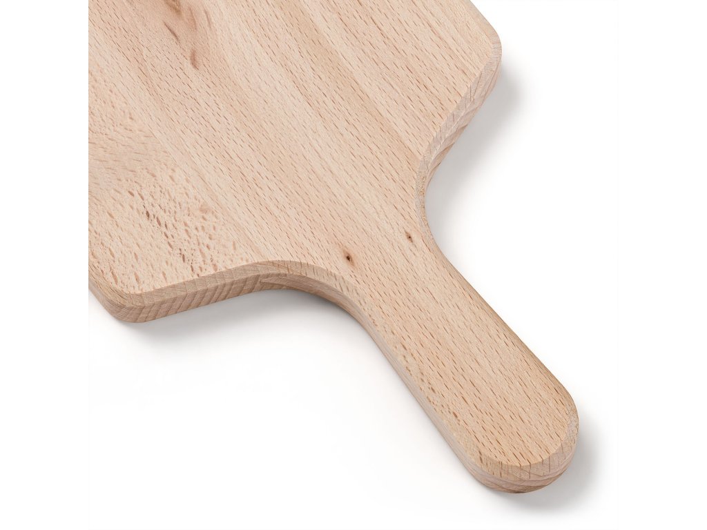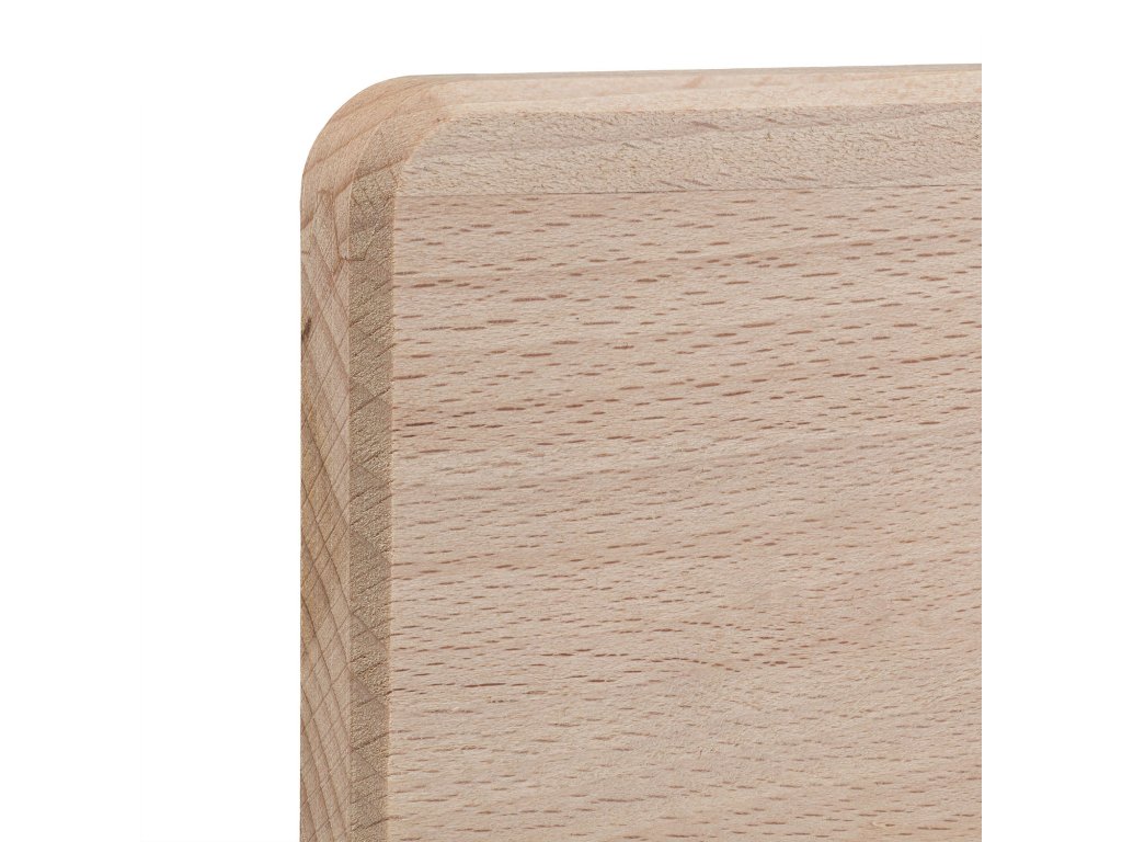 Das Brett besteht aus verleimtem Buchenholz in naturbelassener Ausführung, ohne Oberflächenbehandlung. Die natürliche Maserung des Holzes, einschließlich Ästen und Farbabweichungen, bleibt erhalten – jedes Stück ist ein Unikat.